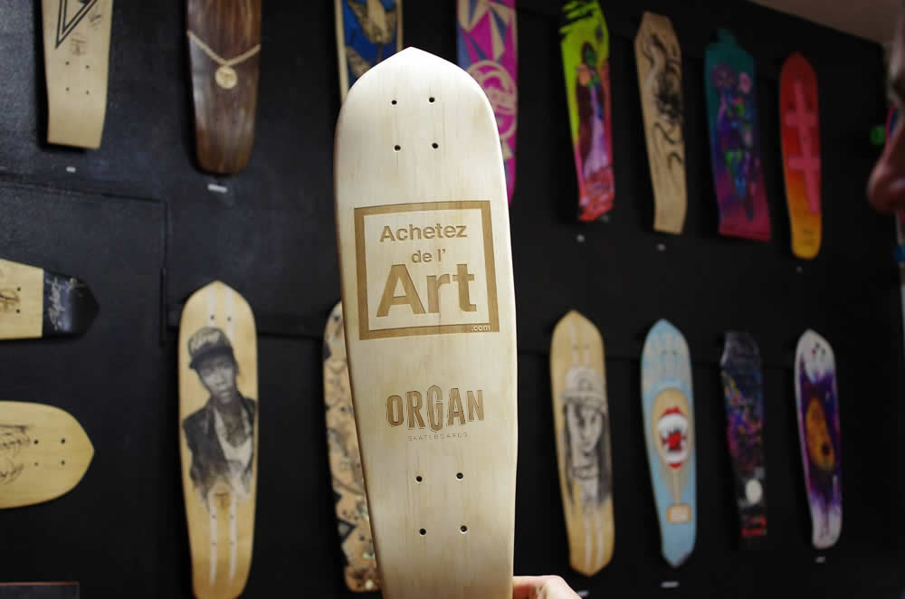 Organ Skateboards est une marque de skate qui crée des cruisers à partir de vieilles planches de skate récupérées. Dans une démarche écologique, tout le bois est récupéré, si bien que les chutes de bois servent aussi à créer divers autres objets (monture de lunettes, coque d’iphone, etc.). Au travers du logotype et du branding développés, les notions de qualité et de haut de gamme du reshape sont représentées par les lignes et le travail autour de la forme particulière de ces cruisers.