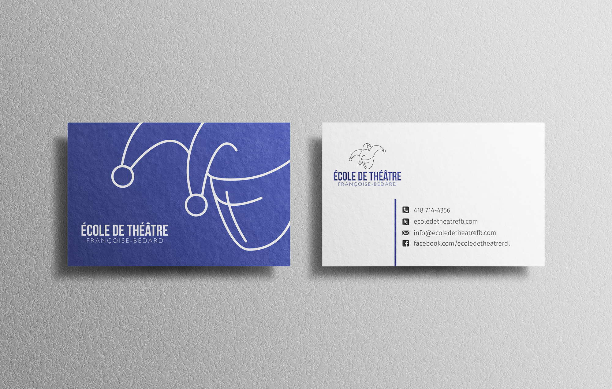 L’École de théâtre Françoise-Bédard décide pour ses 30 ans de renouveler toute son identité graphique. Composée initialement d’un arlequin, figure célèbre dans le théâtre et facilement reconnaissable, un travail a été effectué autour de ce personnage pour qu’il soit modernisé, notamment en utilisant un tracé simplifié qui représente le dynamisme, l’ouverture d’esprit et le mouvement présents dans le théâtre.